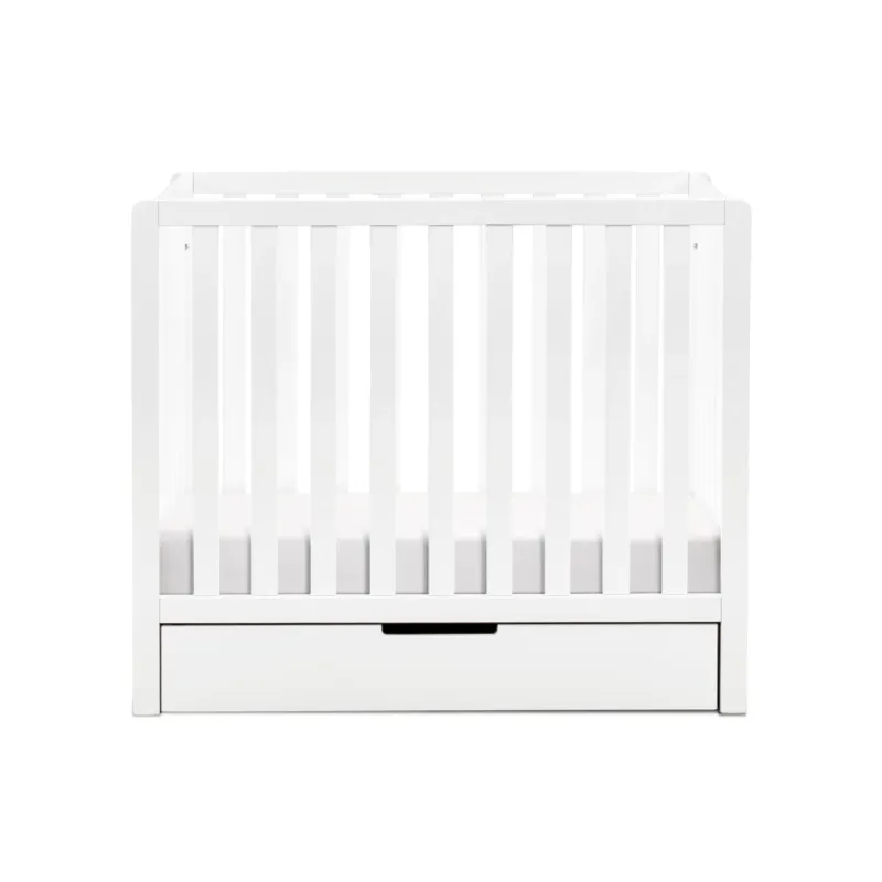 The Colby 4-in-1 Convertible Mini Crib with Trundle is a more compact, space-efficient version of the customers’ favourite Colby 4-in-1 Convertible Crib with Trundle. It features clean lines and a spacious, built-in trundle for a beautiful and practical nursery. The Colby Mini Crib grows with your child with its four different mattress height positions and converts into a mini toddler bed, daybed, and twin-size bed to grow with your child (conversion kits sold separately).