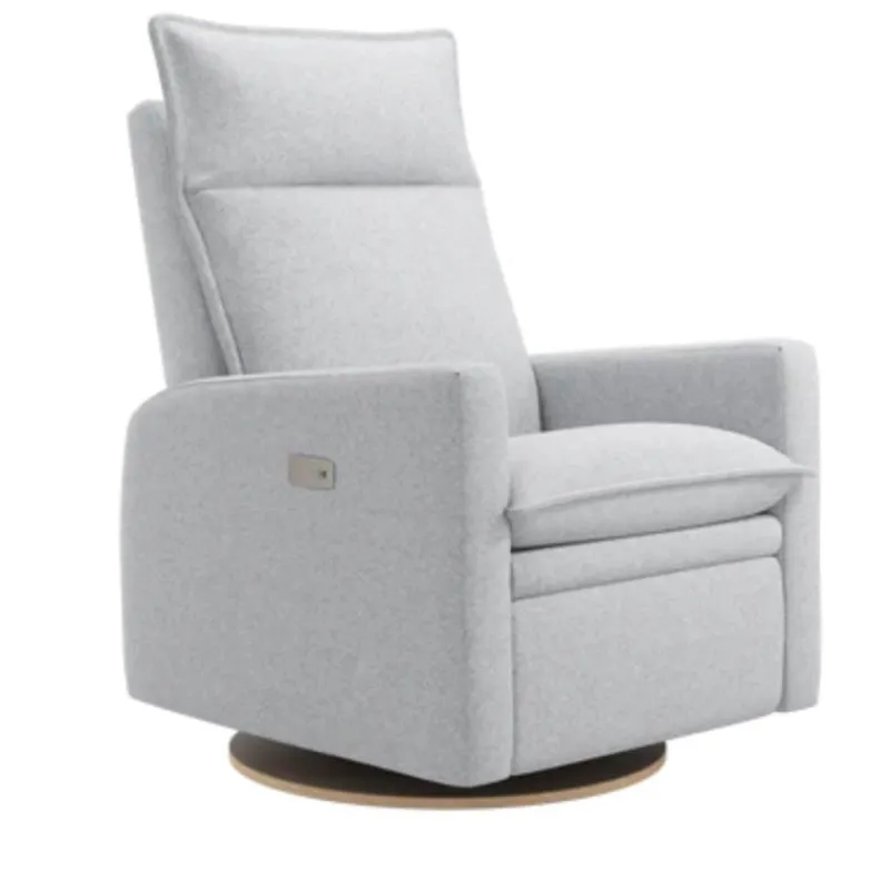The new Arya recliner chair, swivel glider with removable cushions offers baby’s rooms a sleek, relaxed, and comfortable style with plush cushions, which allow you to sink into the chair to find the ideal relaxing position.