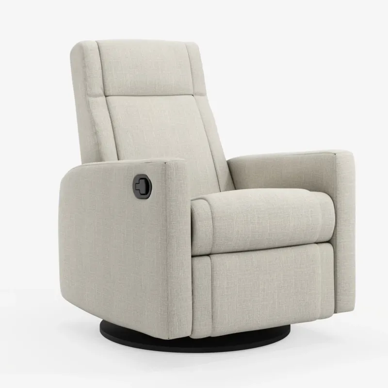 Comfort meets craftsmanship in the Jaymar Nelly Upholstered Swivel Recliner—a Canadian-made favourite among parents for its sleek design, supportive features, and premium materials. Designed to promote relaxation during feeding, rocking, or story time, the Nelly offers a long, gentle gliding motion and an easy manual recline with an integrated footrest.