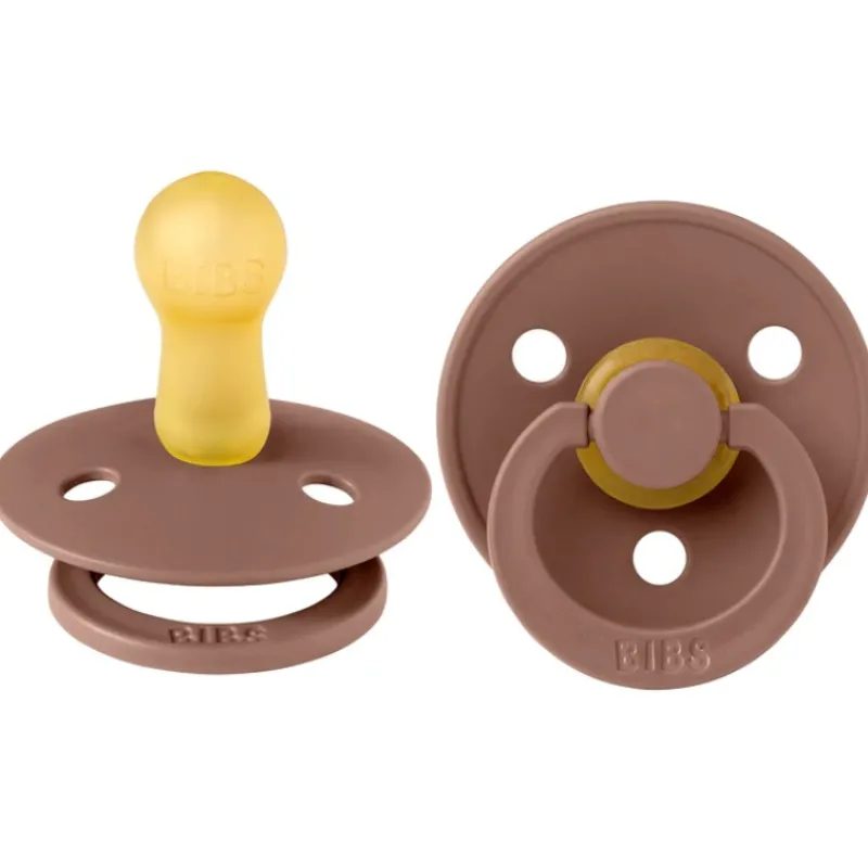 BIBS Colour pacifiers are thee original BIBS pacifier and has been on the market for over 45 years. It has the signature round BIBS shield with three vent holes and round BIBS engraved handle ring.