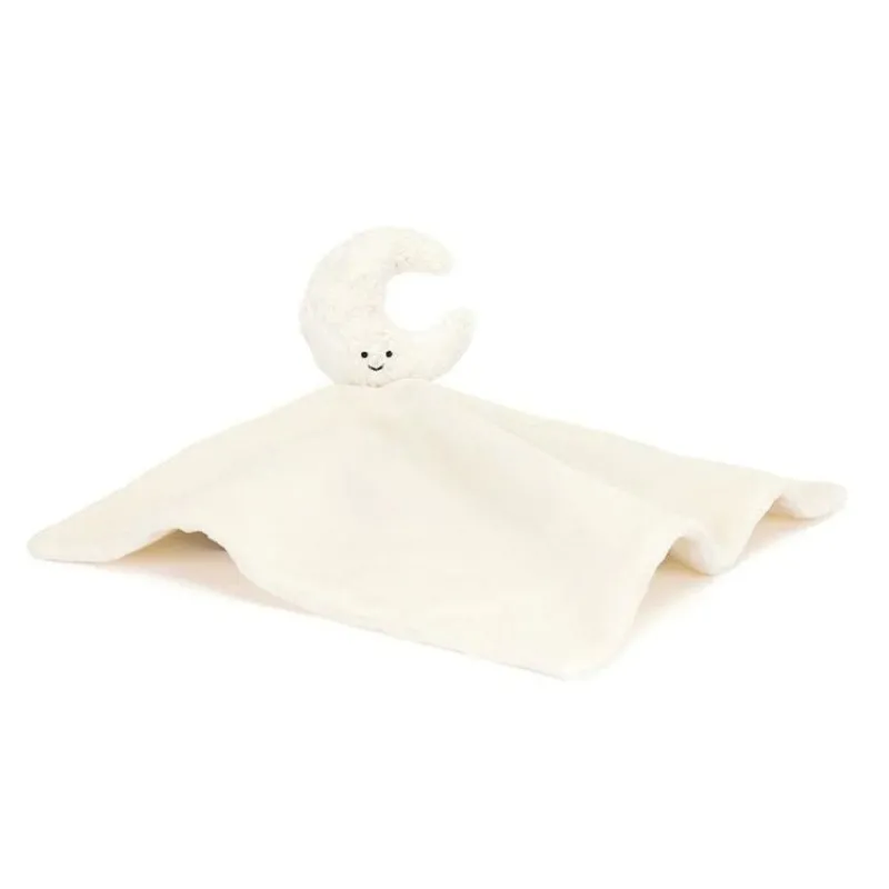 - Moon: The Amuseables Moon Soother is beautifully textured in cream fur with embroidered eyes and cheerful smile. The crescent moon holds an irresistibly soft soother, made with recycled fibres. Rolled up and presented in a Baby Jellycat grosgrain ribbon, it makes a gorgeous gift for newborns, sure to bring smiles and cuddles.Â