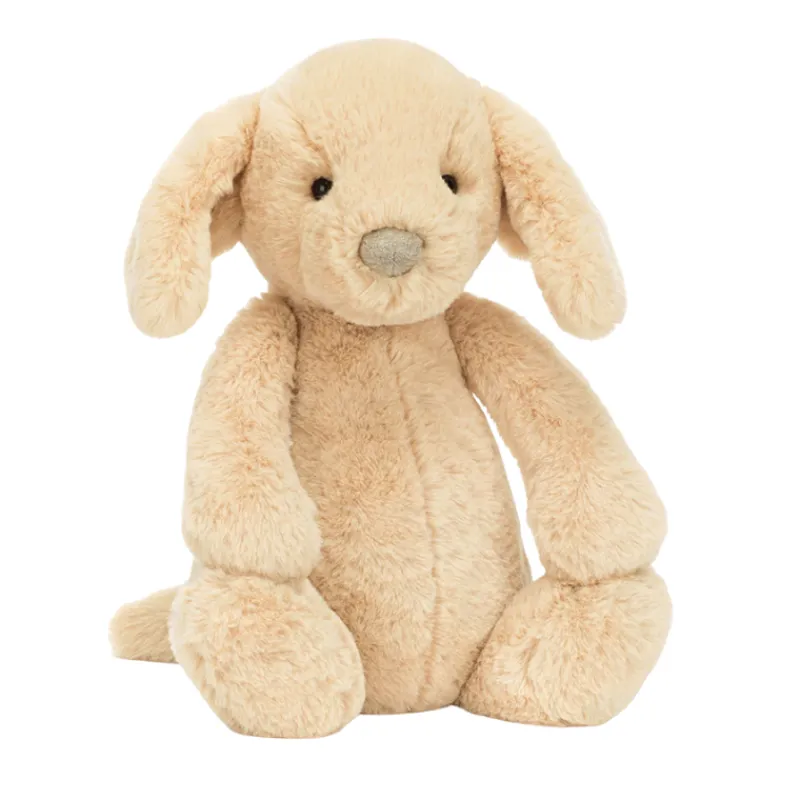 Meet Bashful Luxe Puppy Orlando, the most dapper and delightful pup in the Jellycat family! With his luxuriously soft honey fur, this charming canine is as snuggly as he is stylish. His long, floppy ears are perfect for gentle strokes, and his velvety nose gives him an irresistibly sweet expression.