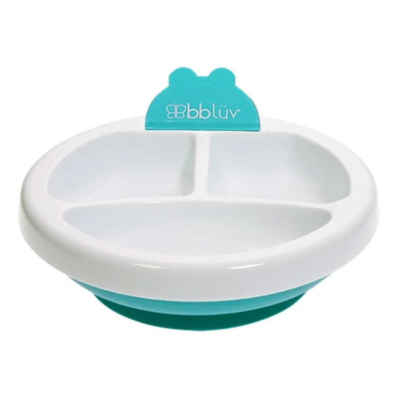 Is it time to introduce your baby to solid foods? The 3-compartment Platö from bbluv will keep foods at just the right temperature to serve to your baby. With a water chamber for hot water, this plate will hold the temperature of warm foods while you baby takes her time enjoying her meal. Genius! Features: -3 separate compartments -Strong suction base made from safe food grade silicone -Perfect size for babies and toddlers -Hot water chamber with strong safety cap -Durable, stain-resistant and anti-bacterial silicone -Free from BPA and Phthalates -Dimension (inches) : 7.25 Ø x 2.25 -Ages 4m+