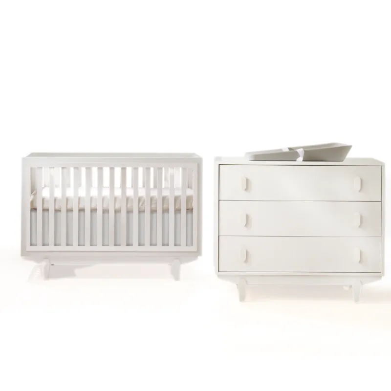 Introducing the Tate Convertible Crib & 3-Drawer Dresser Combo, a harmonious blend of safety, style, and versatility for your nursery. Crafted in Canada to meet rigorous safety standards, the set features solid wood construction with low VOC finishes. The crib converts from a classic crib to a toddler bed and daybed, while the dresser offers ample storage with premium features like self-closing drawers and scratch-resistant laminate. Available in four elegant color combinations, this combo ensures a secure, sophisticated, and practical nursery solution.
