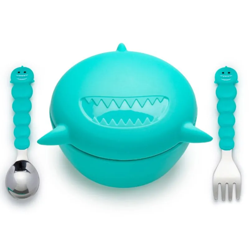 rThese colourful Melii Baby Silicone Animal Bowls with spoon and fork sets are fun and encourage independent self feeding and development of fine motor skills. Great for use at home, school or on the go!r