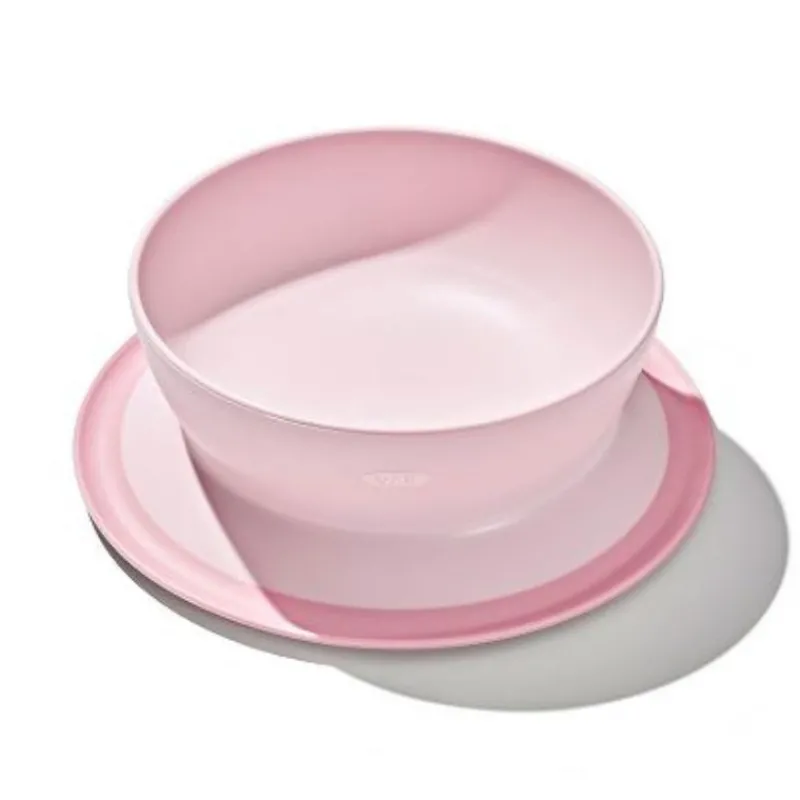 - STAYS IN PLACE UNTIL MEALTIME IS OVER — Cut down on mealtime messes with the OXO Tot Stick & Stay Suction Bowl. The Bowl features a suction base that sticks securely to surfaces until mealtime is over, preventing sliding, slipping and tipping